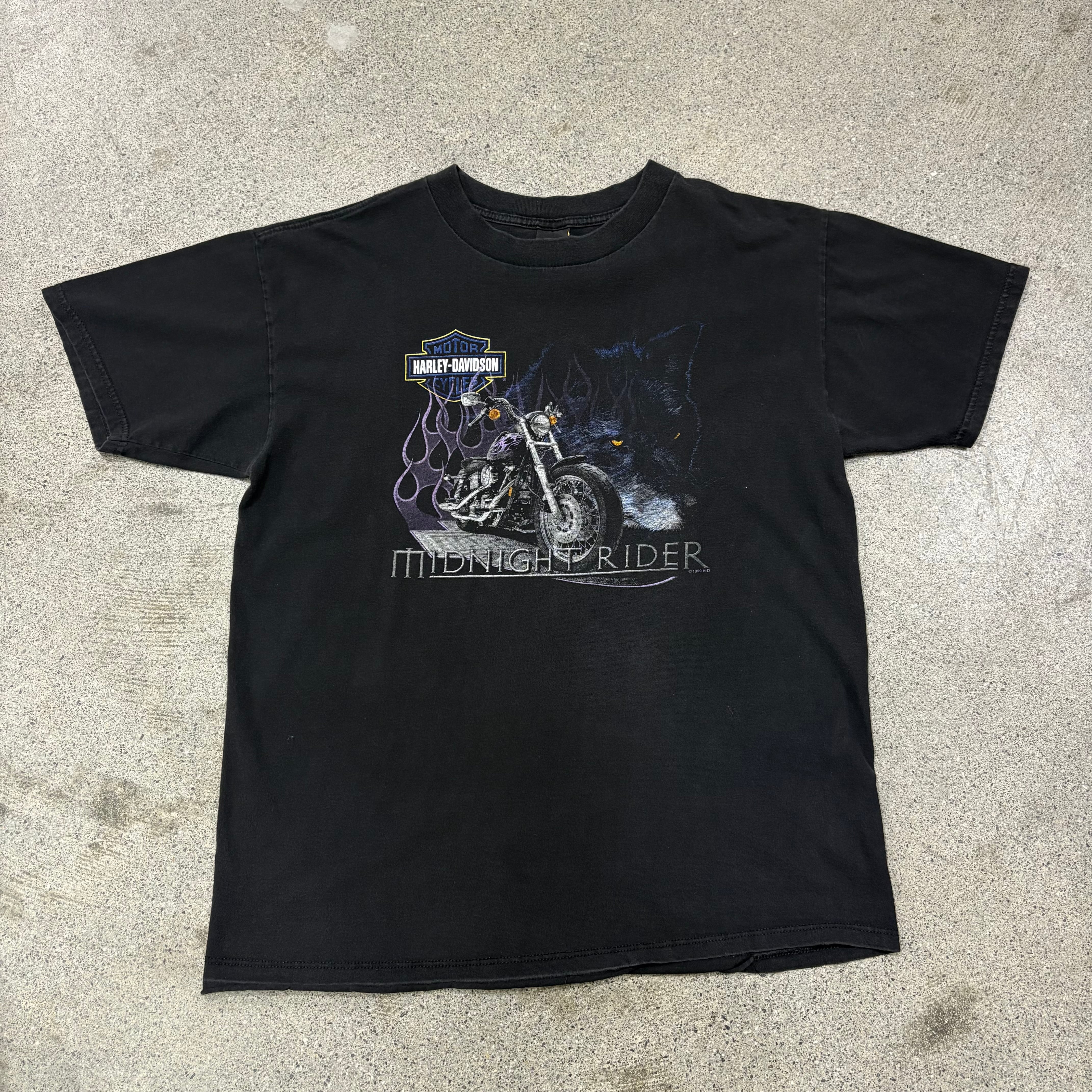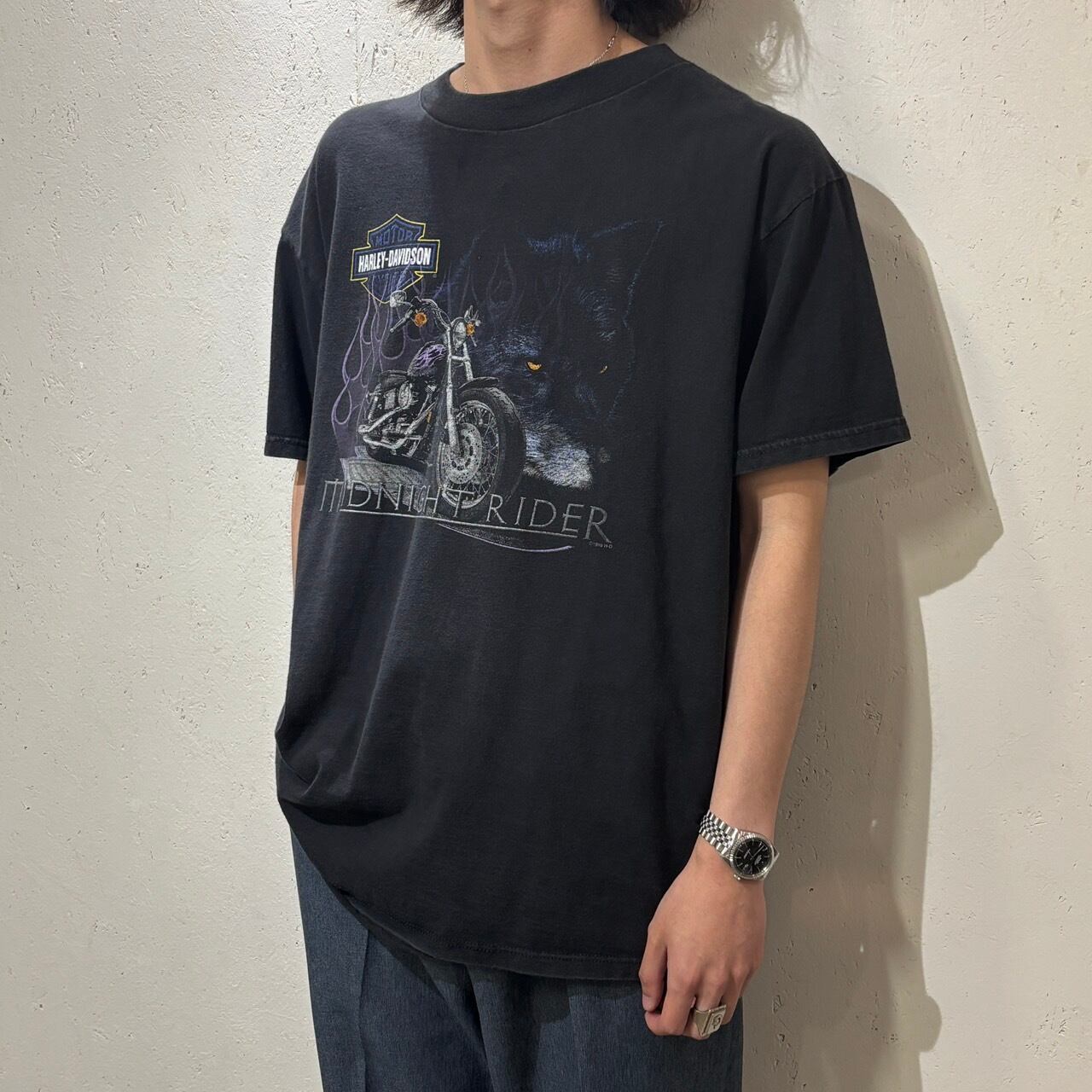 【Harley Davidson】90s〜 Printed T-Shirt XL "Wolf × Flame"