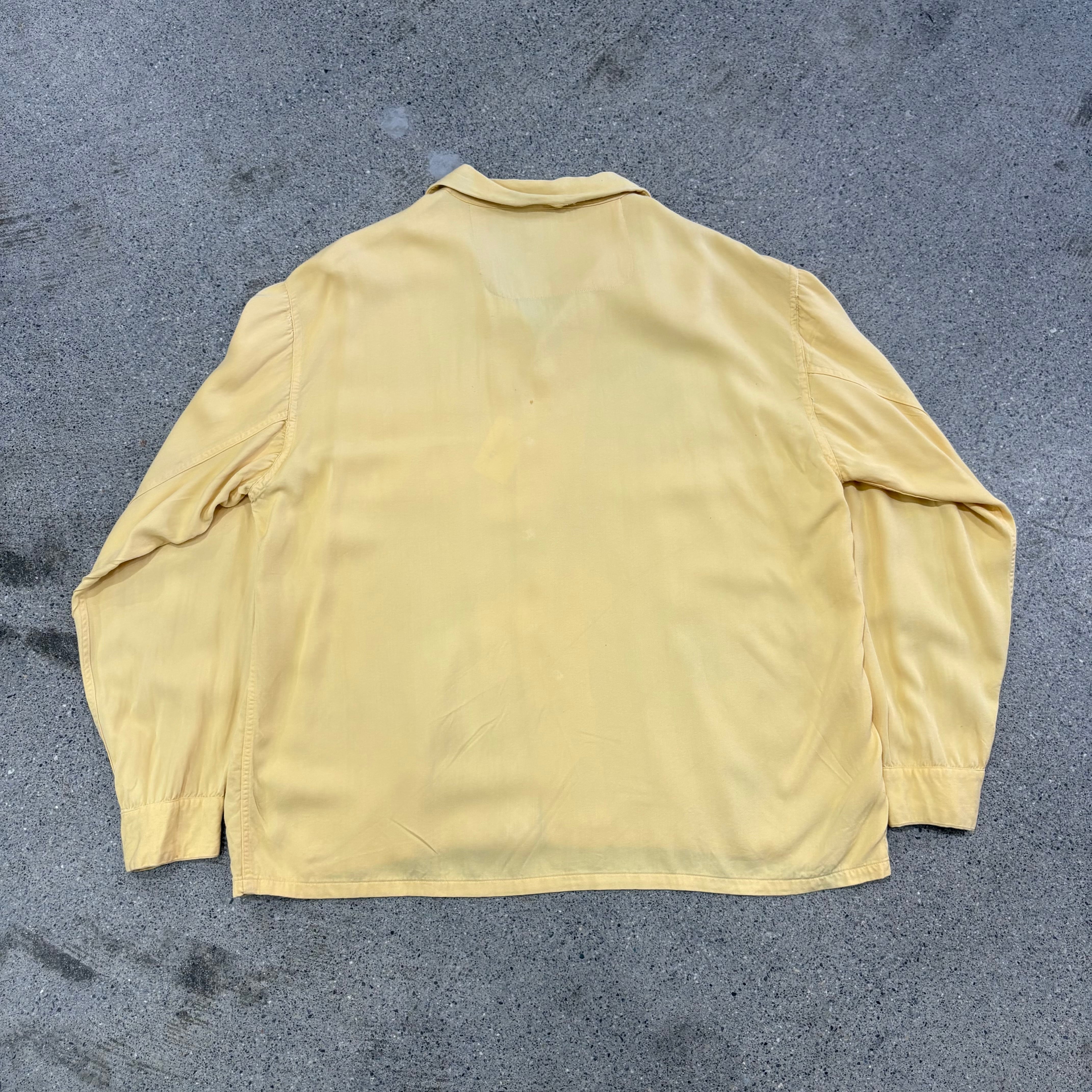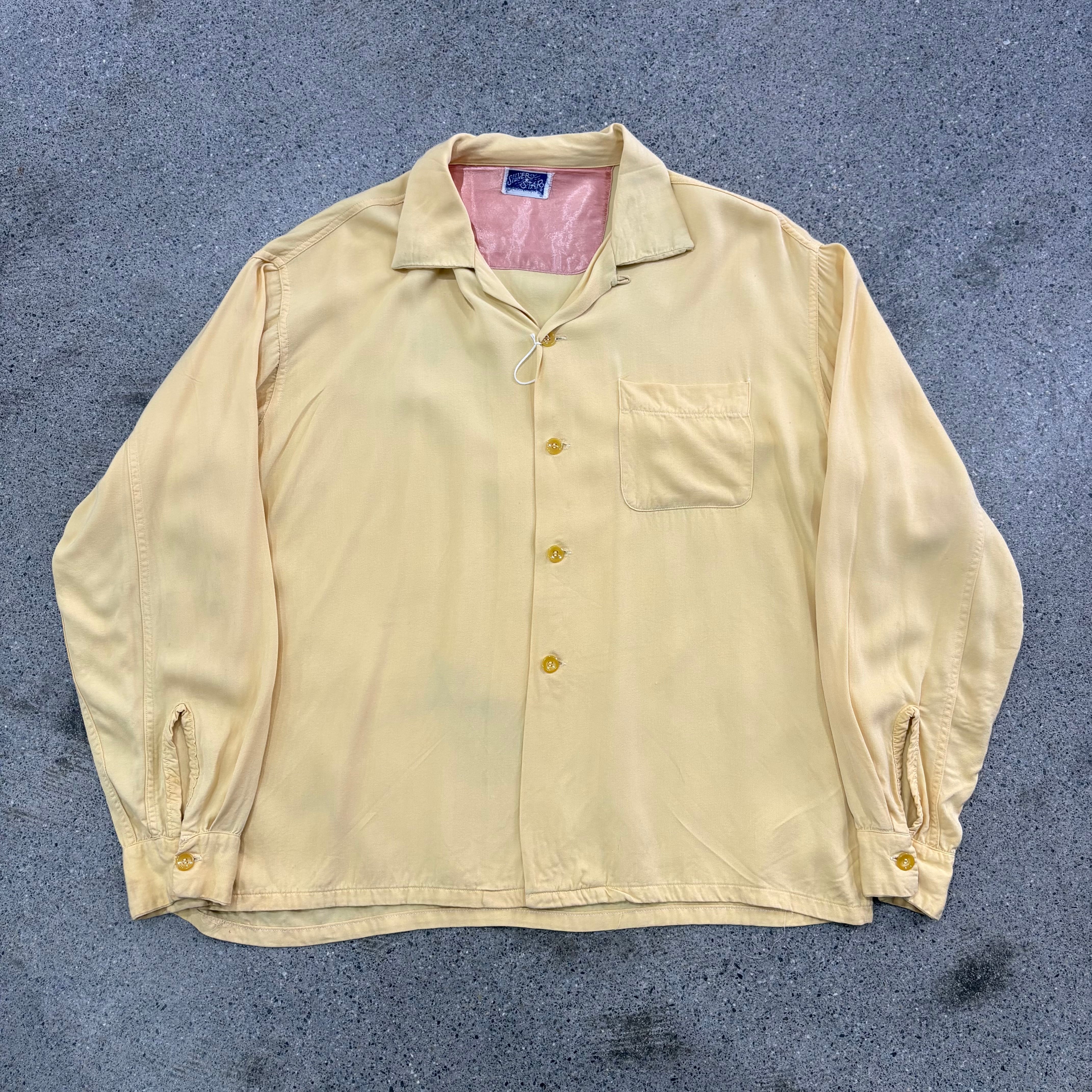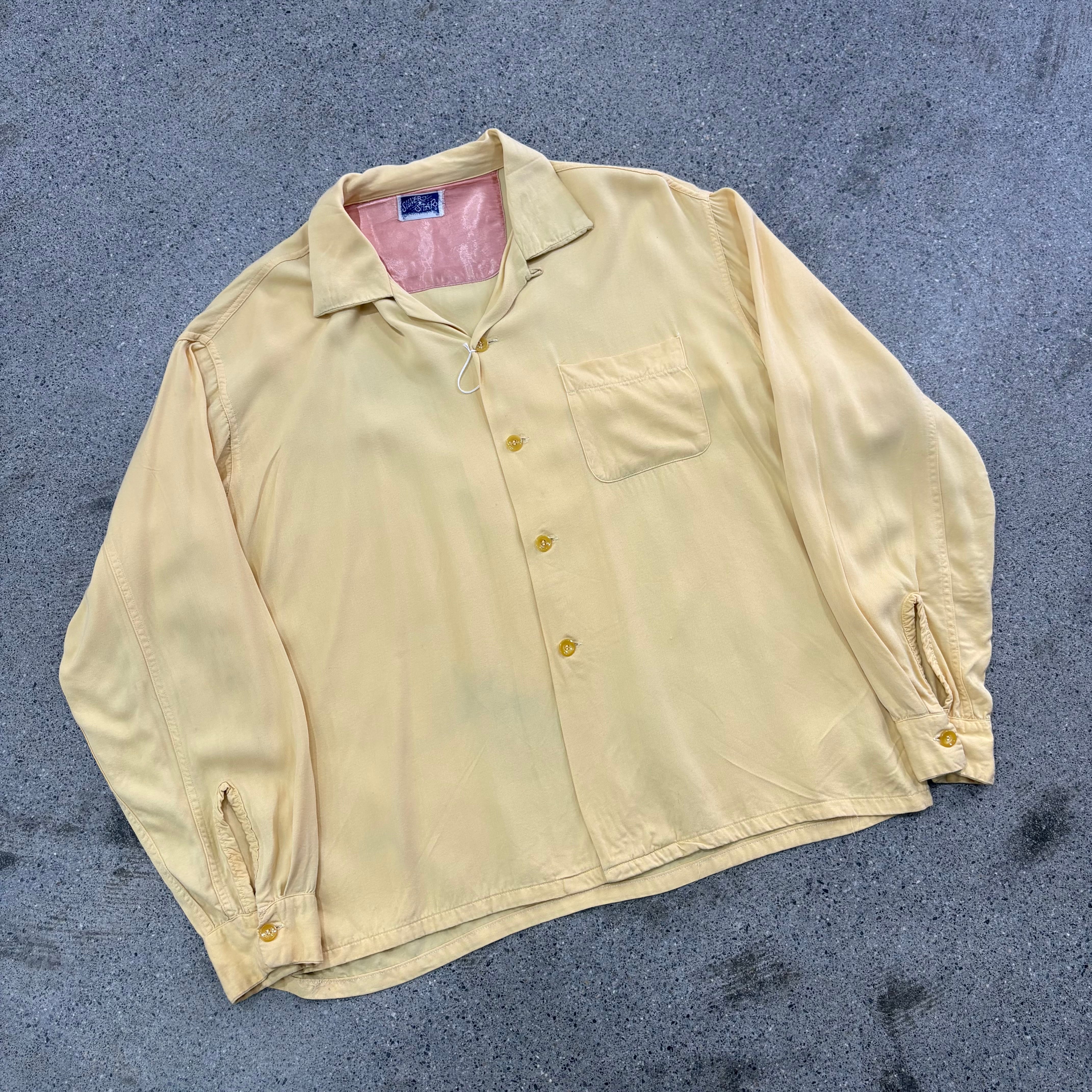 【SILVER STAR】Around 50s Rayon Gabardine Loop Collar Shirt Approx.Large "Good Color"