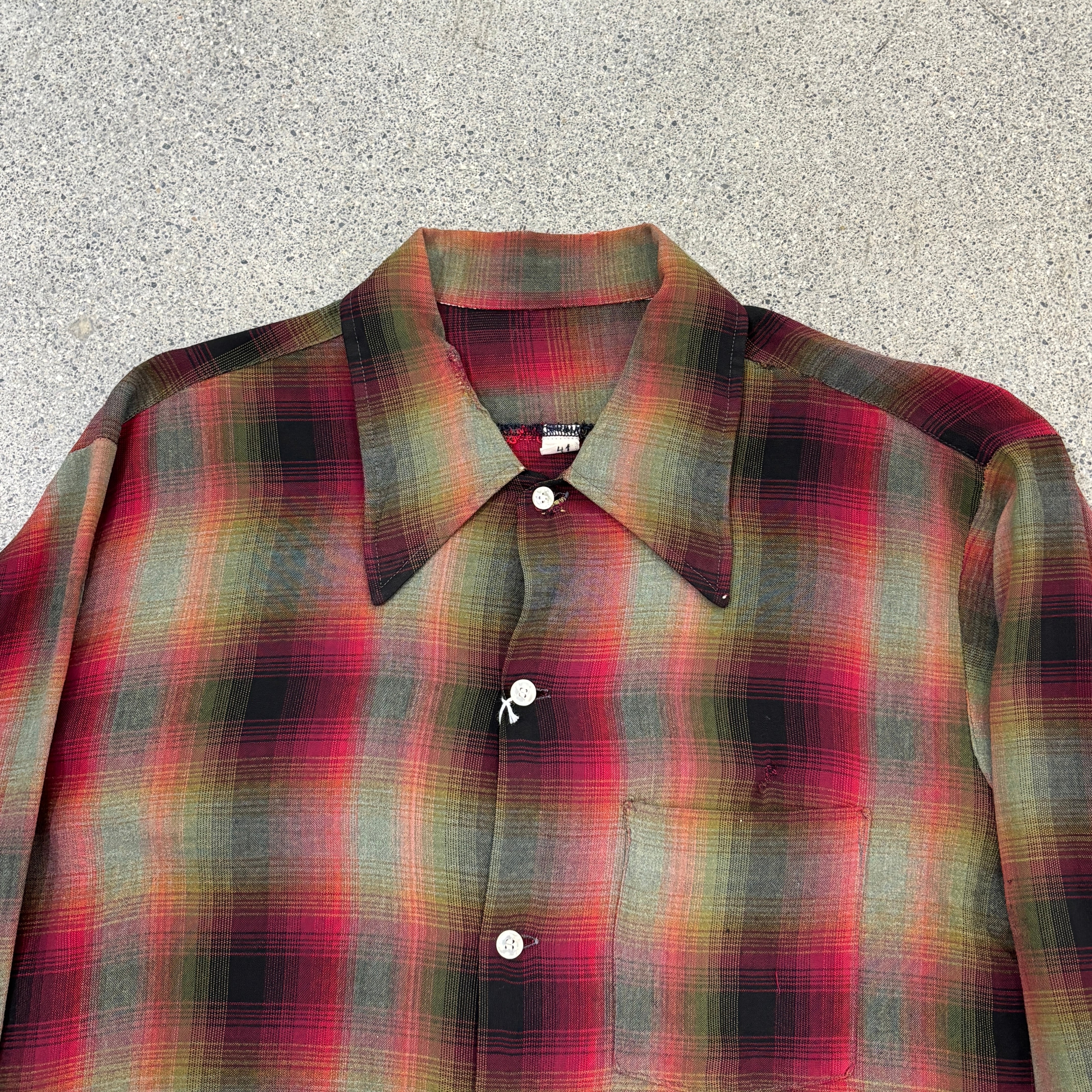 70年代頃、シャドーチェックのレーヨンシャツです。