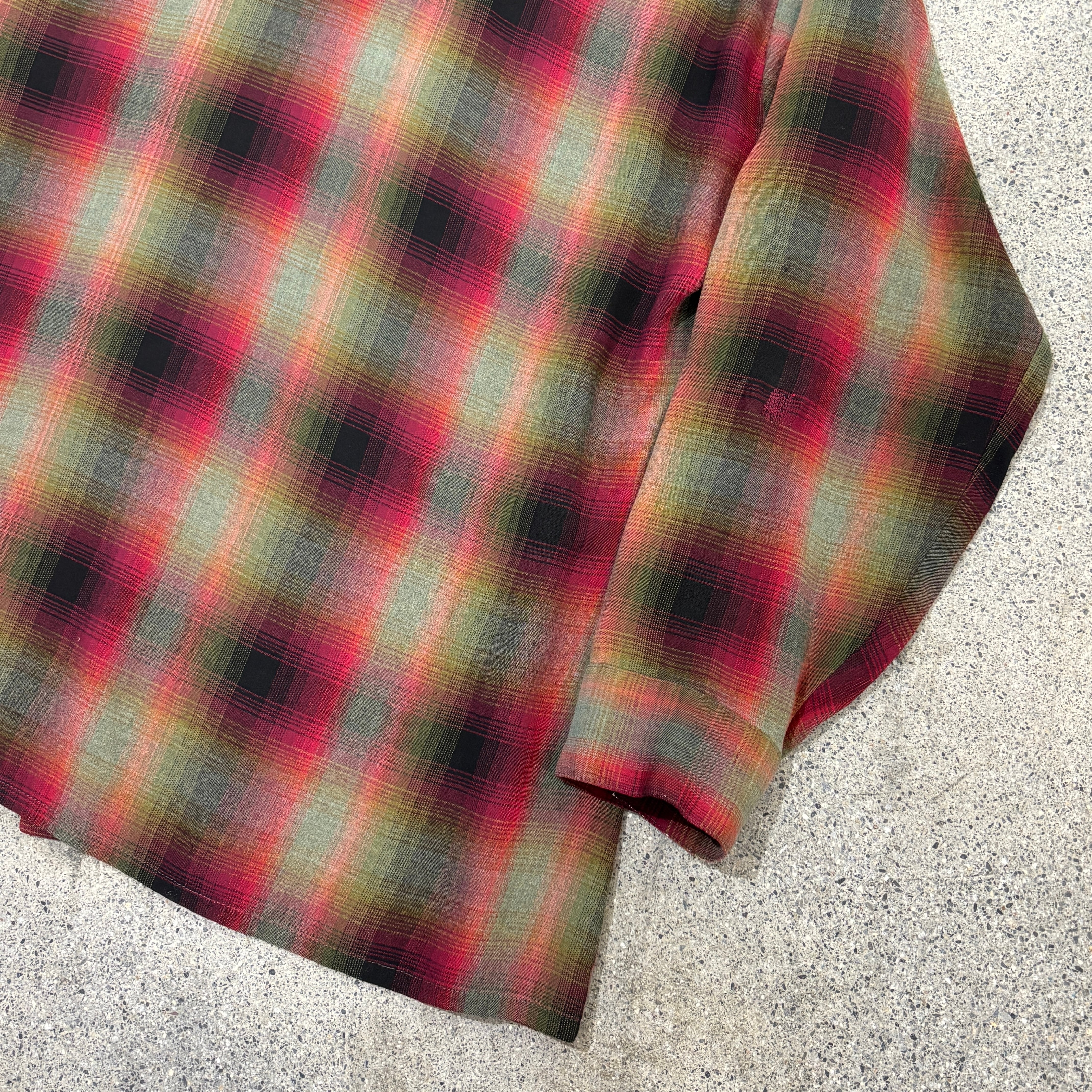 【Unknown】Around 70s Rayon Shirt Shadow Check Approx.Large "Good Color"