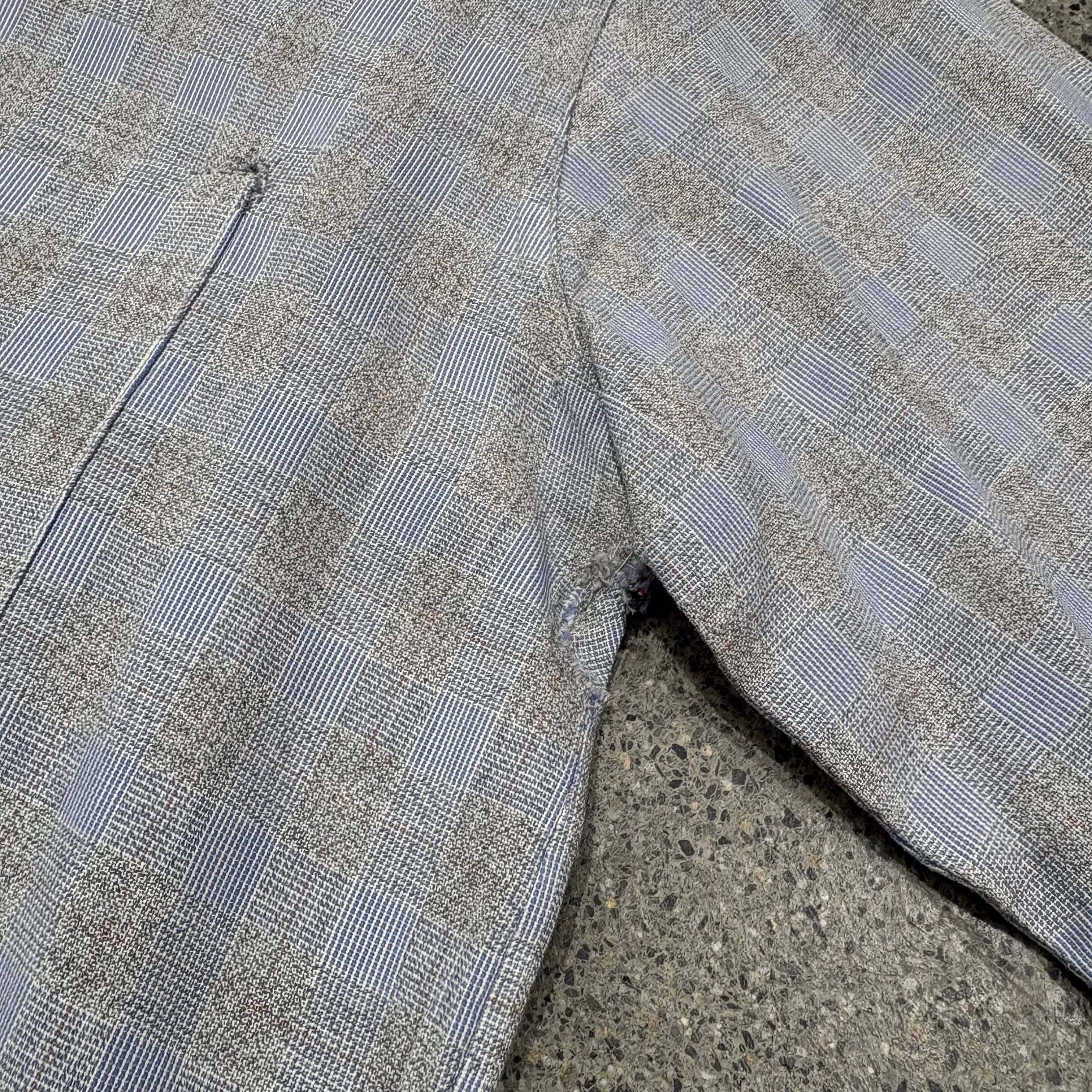 左袖に生地のほつれ、両脇、ポケット端、第5ボタンホールにリペアはございますが、着用に支障のないUSEDコンディションです。