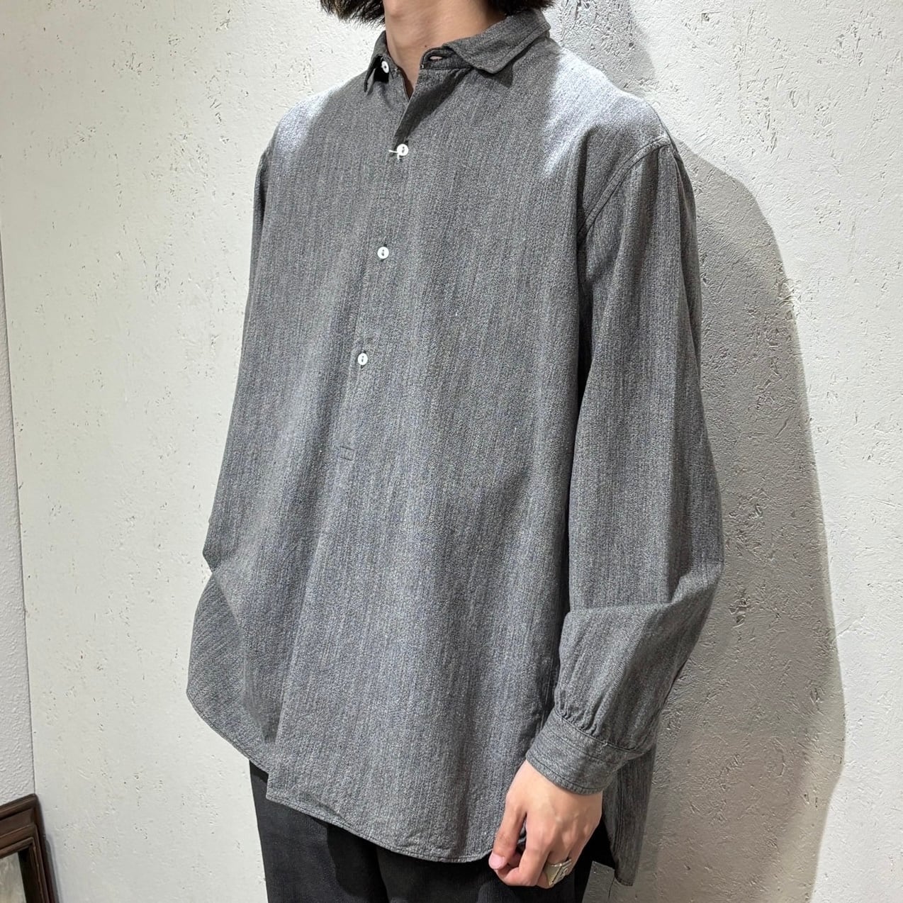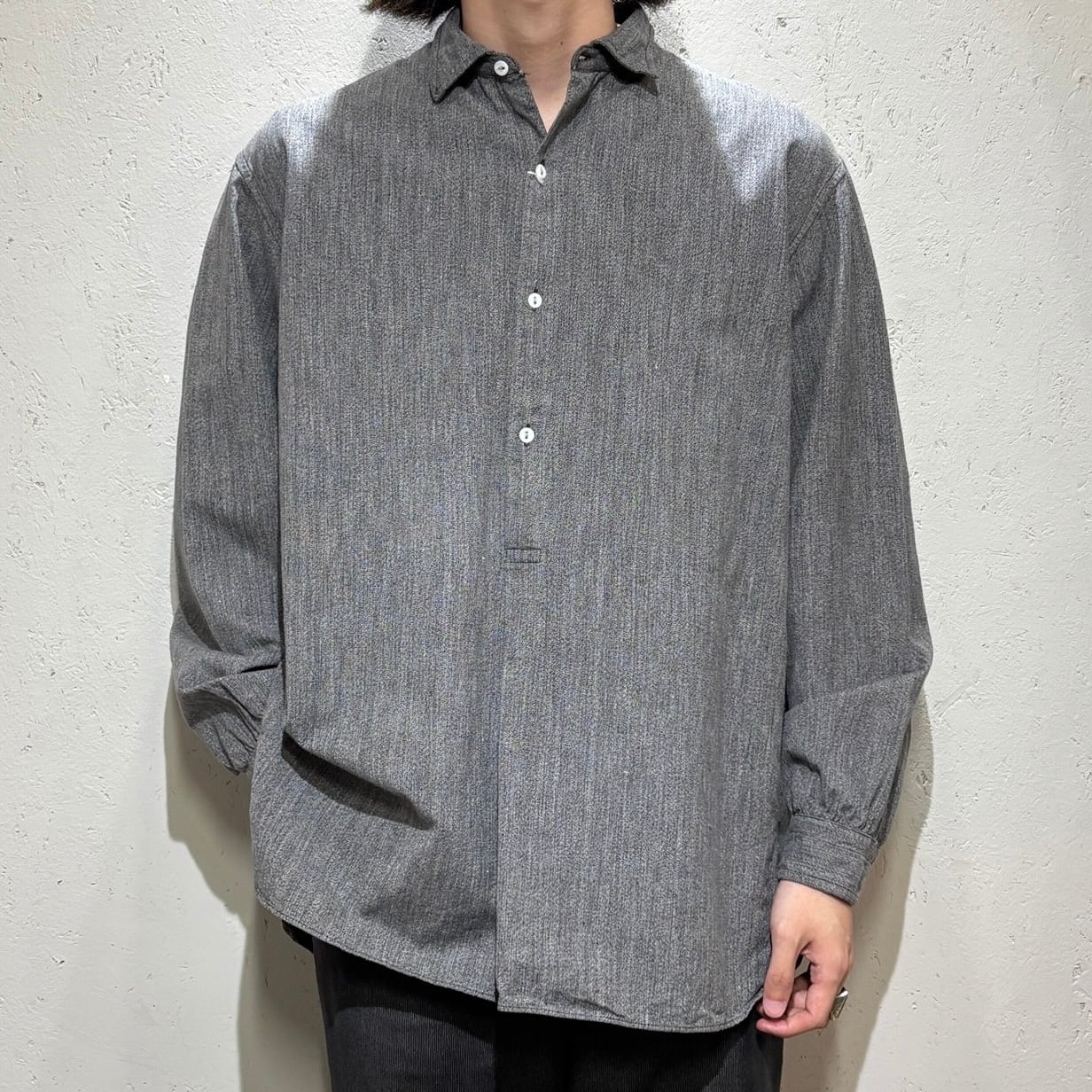 ゆったりとしたシルエットで、古いシャツながらも今らしい着こなしが可能なシャツだと思います。