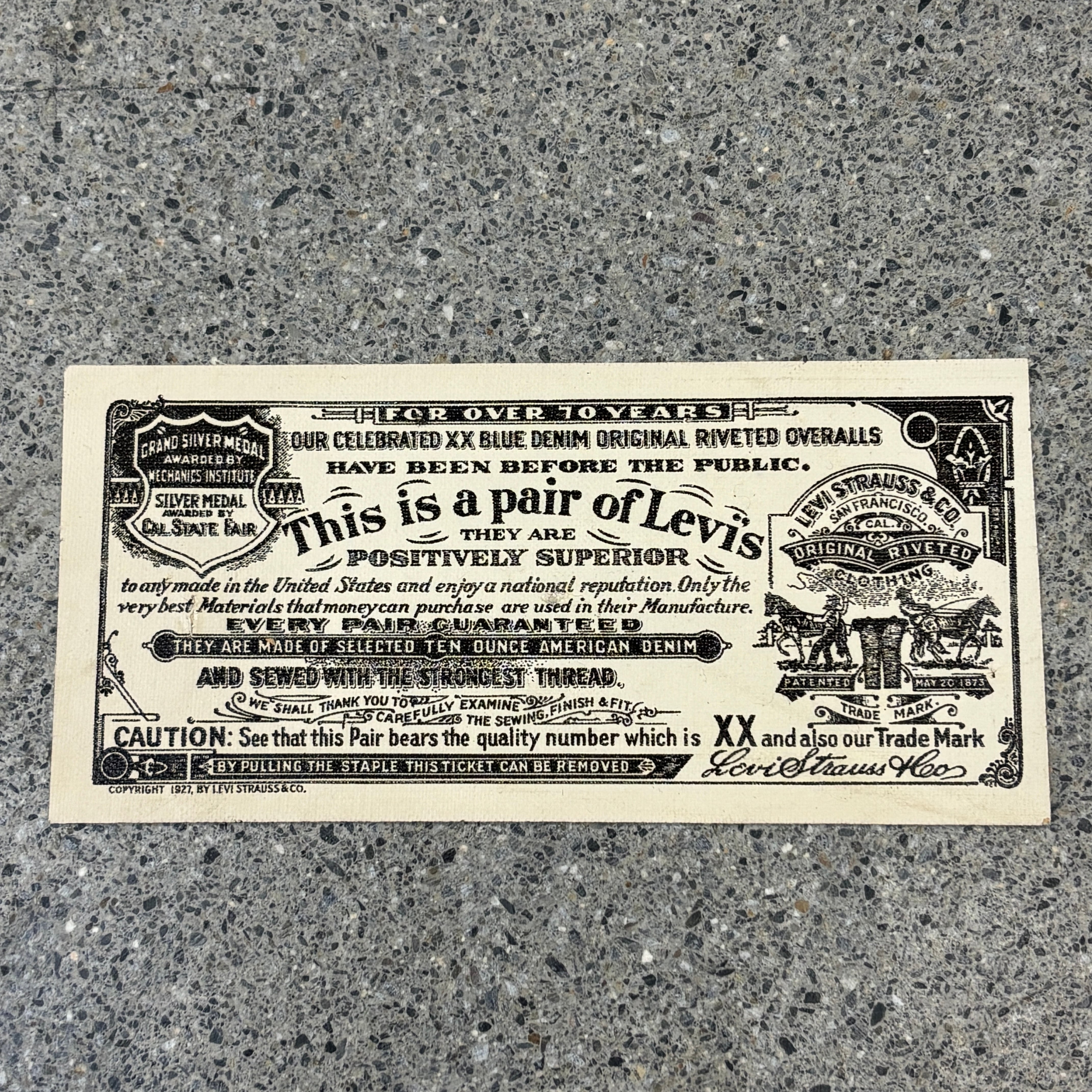 今回リリースは"FOR OVER 70 YEARS"、"ORIGINAL RIVETED"表記の大戦期の希少なギャランティーチケットです。