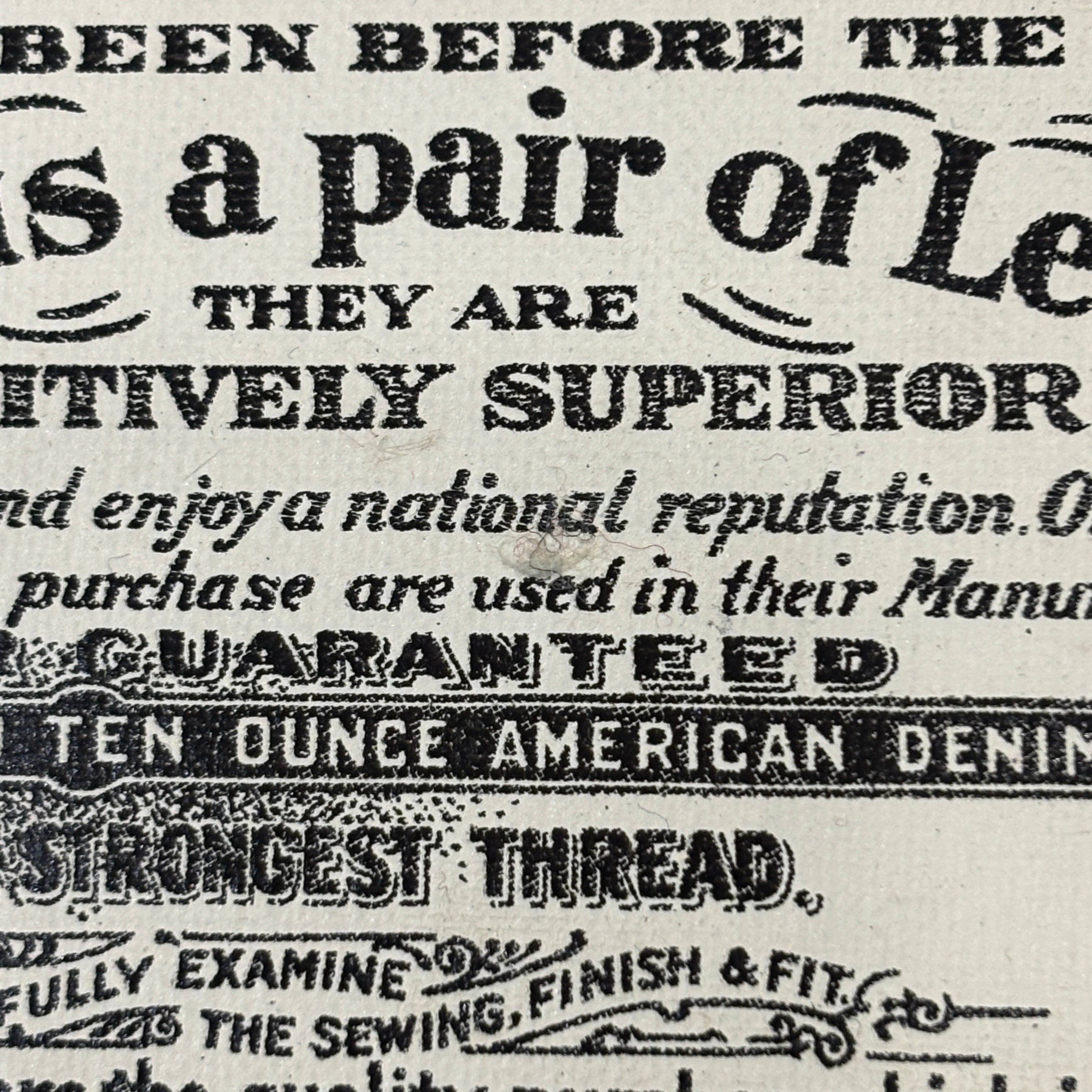 ジーンズの付属品としては正直安くはないですが、80年前の布が捨てられることもなく、このコンディションでまとめて見つかることもないかと思います。