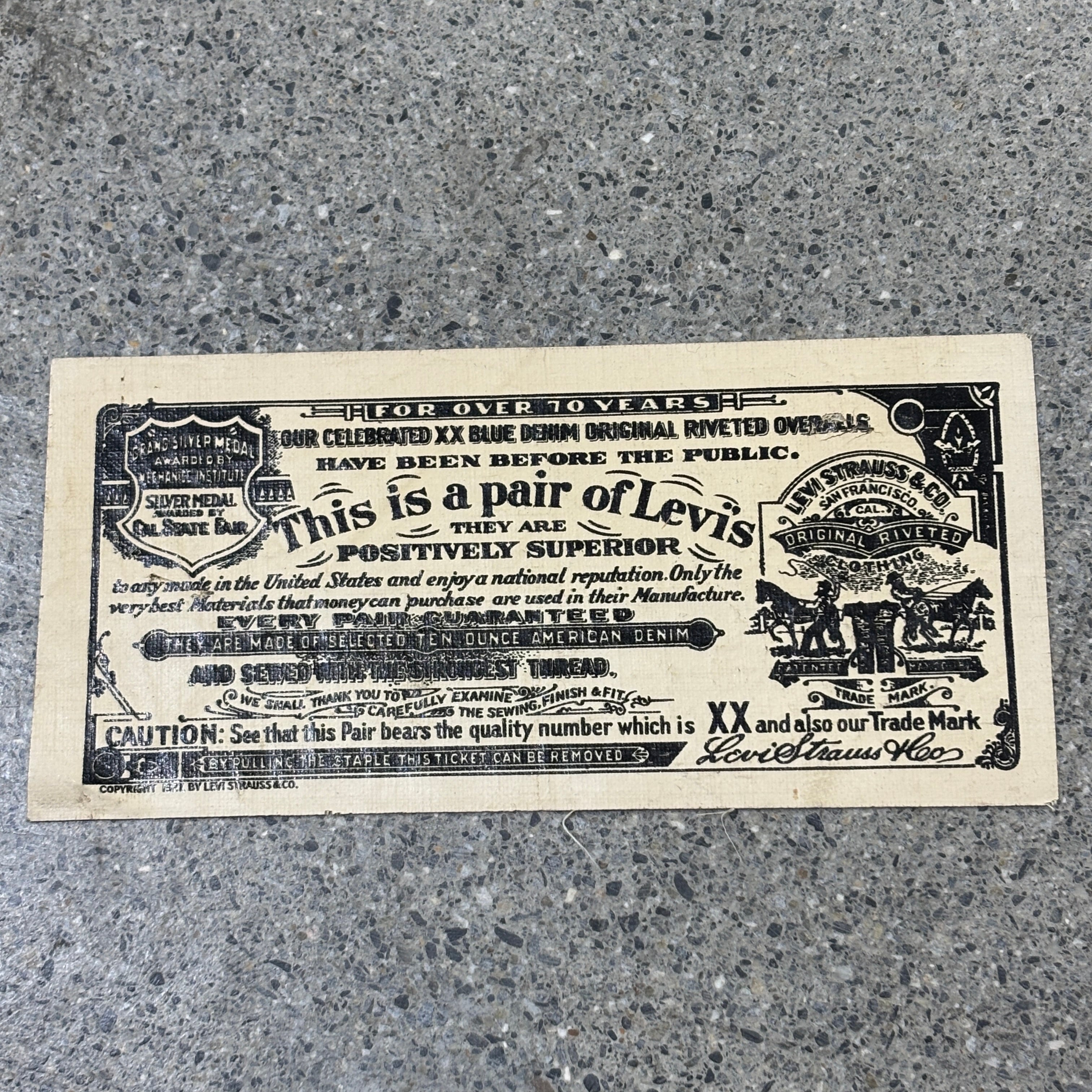 今回リリースは"FOR OVER 70 YEARS"、"ORIGINAL RIVETED"表記の大戦期の希少なギャランティーチケットです。