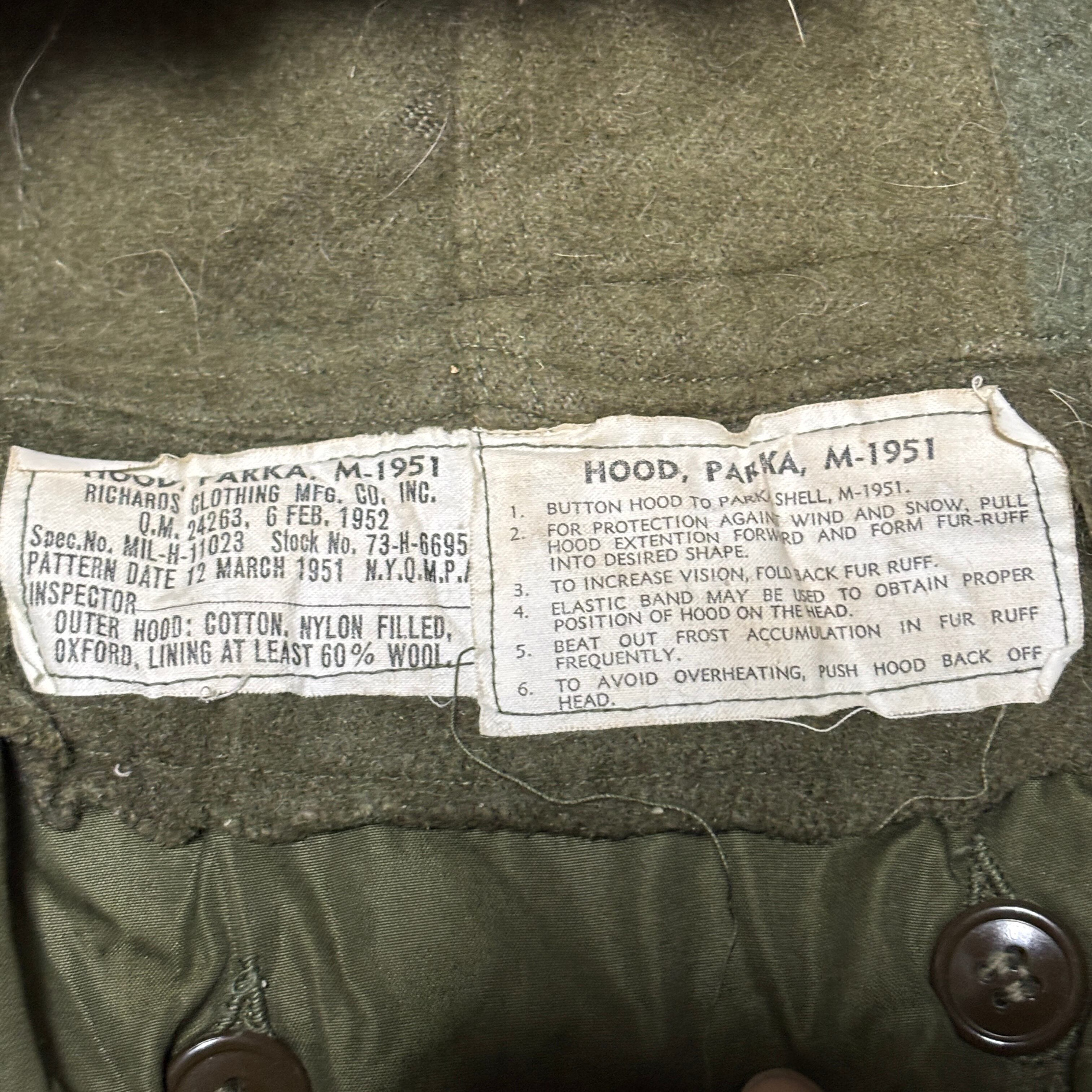 M65との大きな違いはM51はフードが一体型になっており、所謂、60年代にイギリスで流行となったモッズコートになります。